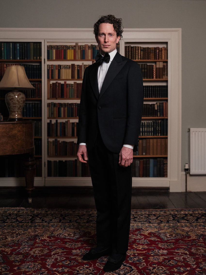 Traditionally made up in matte pure wool black barathea, we've also showcased eveningwear options in white barathea and navy velvet.