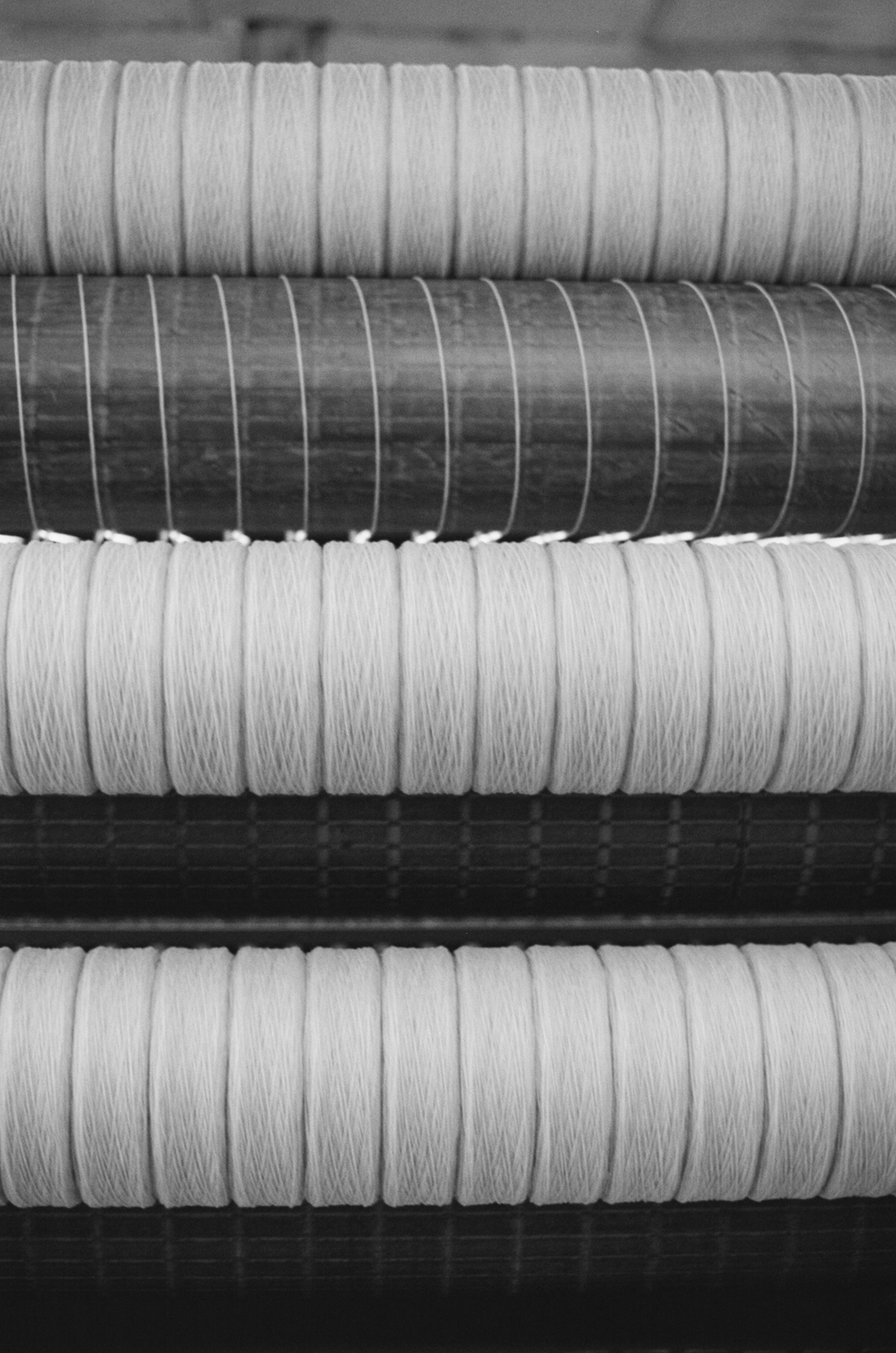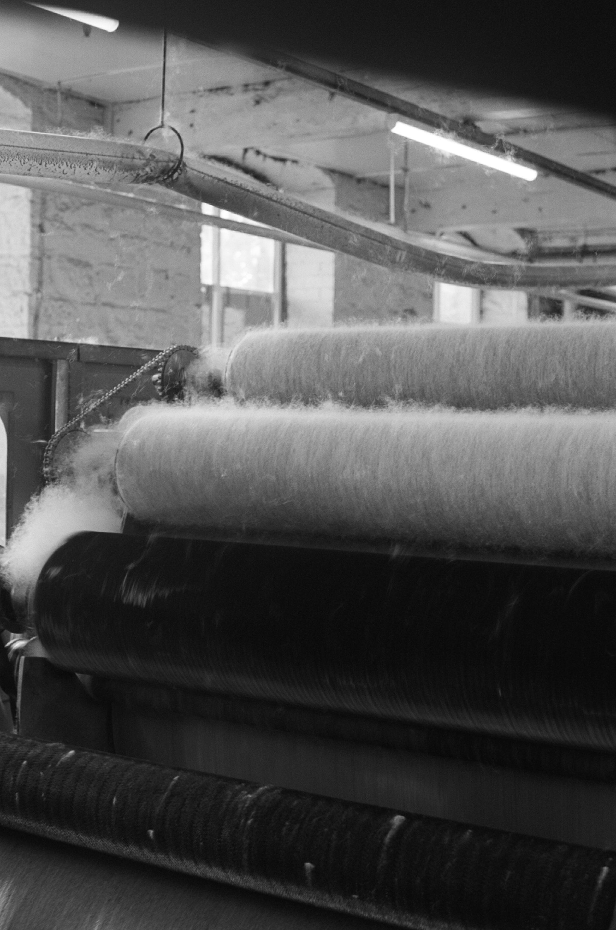 We're grateful to our small place in this ecosystem and the area's expertise, utilizing it and coaxing it towards our point of view so we can do our best to design the matte, textured and interesting cloth we've become known for. Whilst the team checked up on AW25 developments, we brought along our cameras to capture a flavour of a working day at a spinner, weaver and finisher.