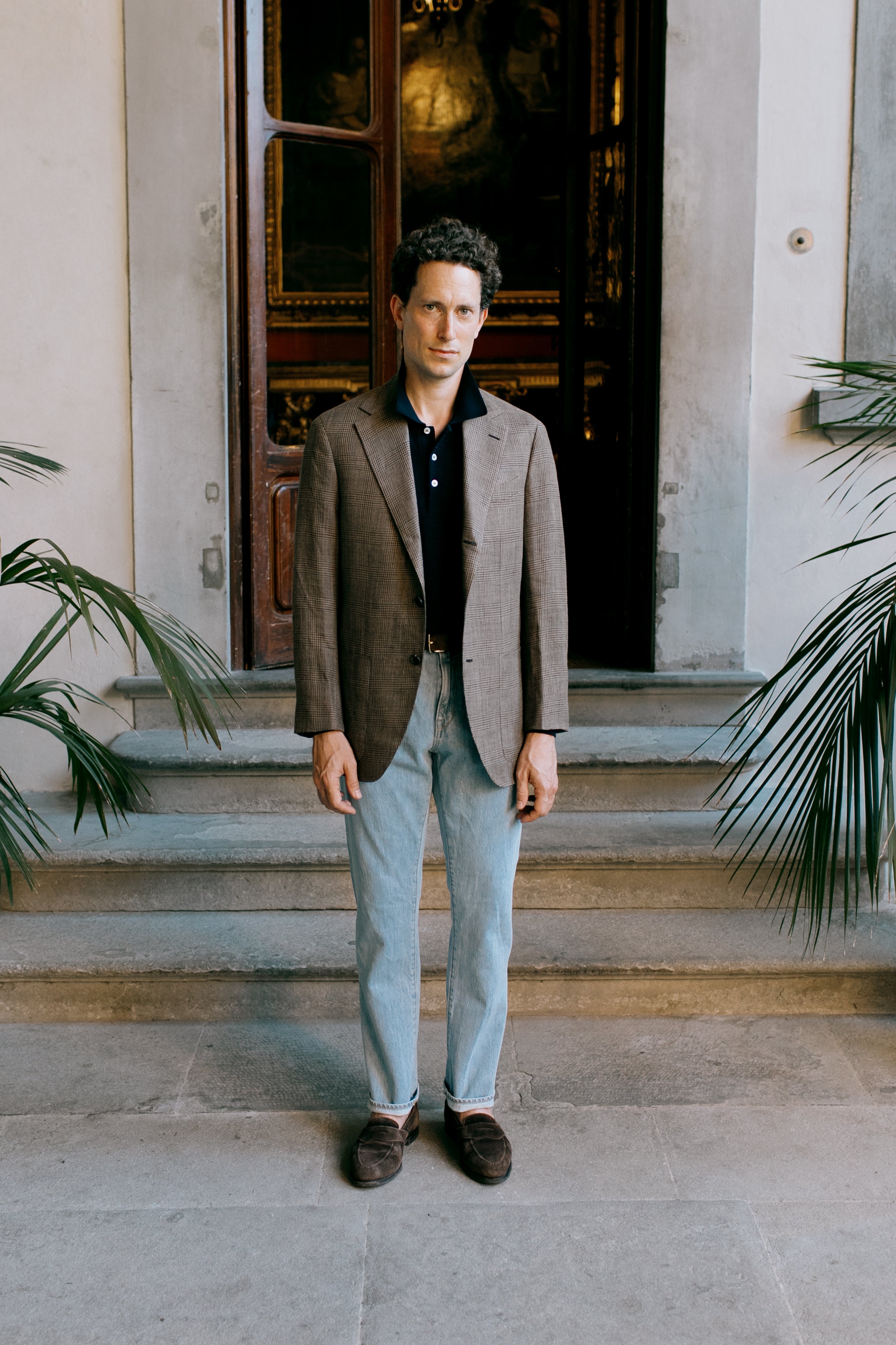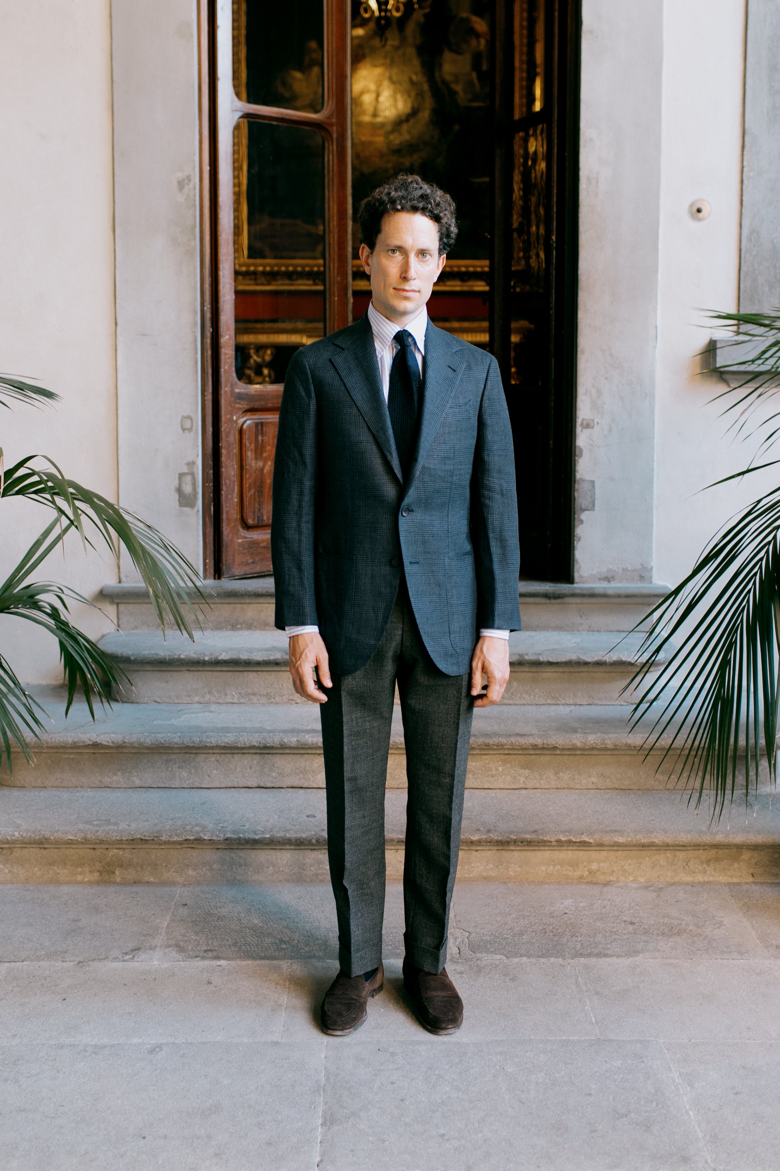 A wonderful backdrop to showcase our approach to Summer tailoring, focusing as usual on cold, muted and dusty tones. Linen, silk and twisted wool fabrics give visual texture to lightweight cloth, allowing for maximum versatility. We've paired more casual looks with the Unley loafers and some of our knitwear offering, dry cotton crepes and mesh polos able to be worn with or without tailored ensembles.