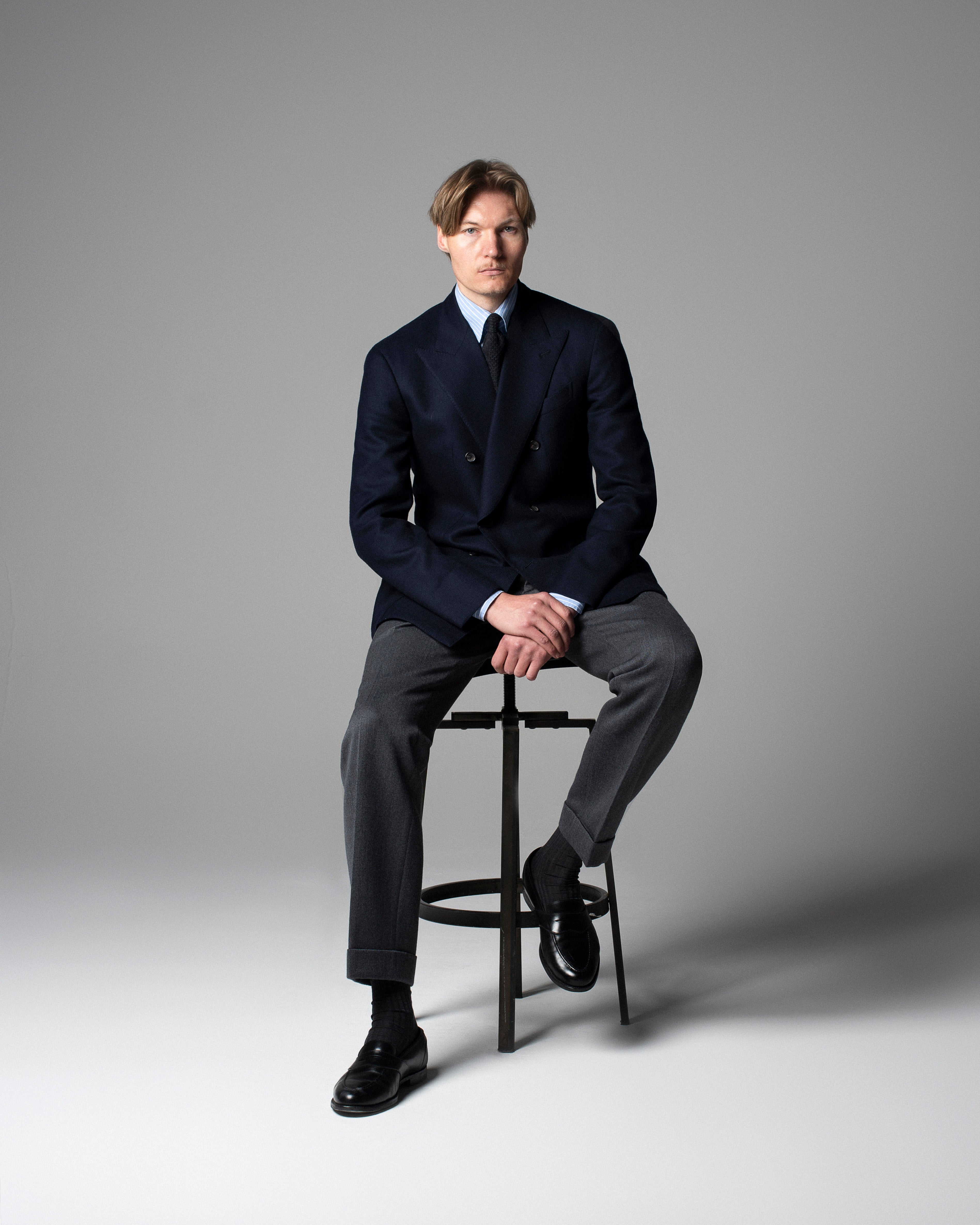 Accessorised here with our range of outerwear, Crockett & Jones footwear, classic shirts and knit, cashmere or dry silk ties.